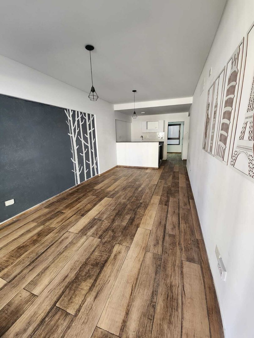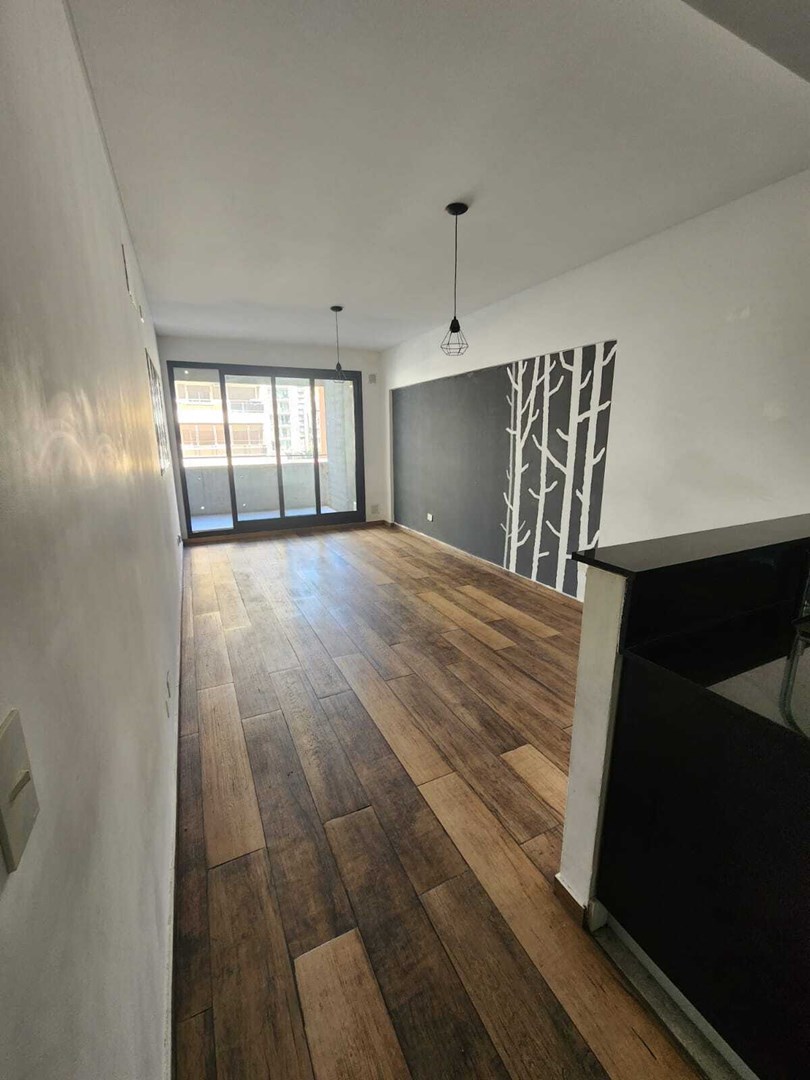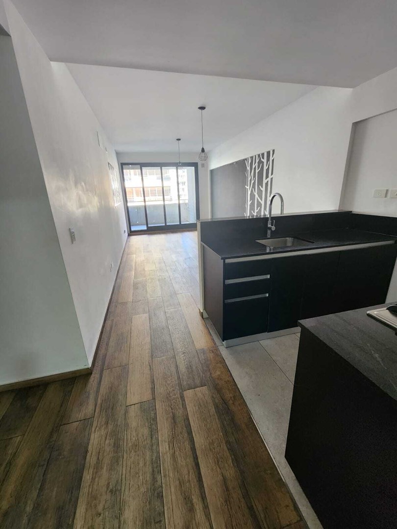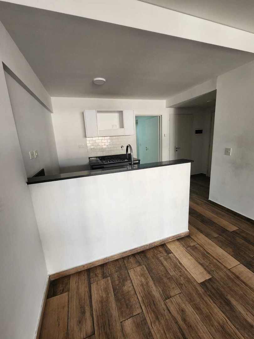 Ingreso principal al Living Comedor con salida al balcón. Cocina semi integrada con barra. Escritorio + Habitación con placard y baño en suite.