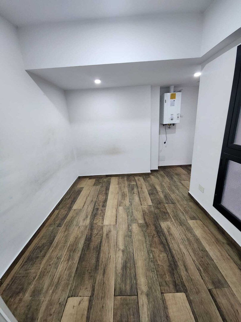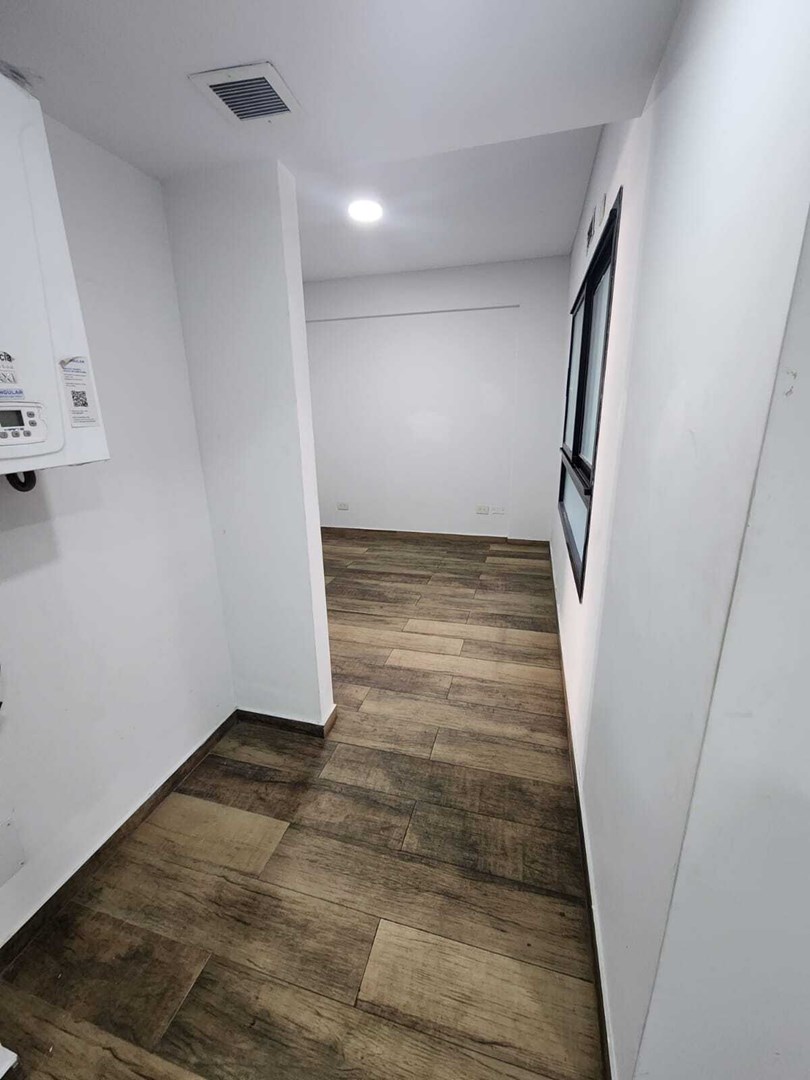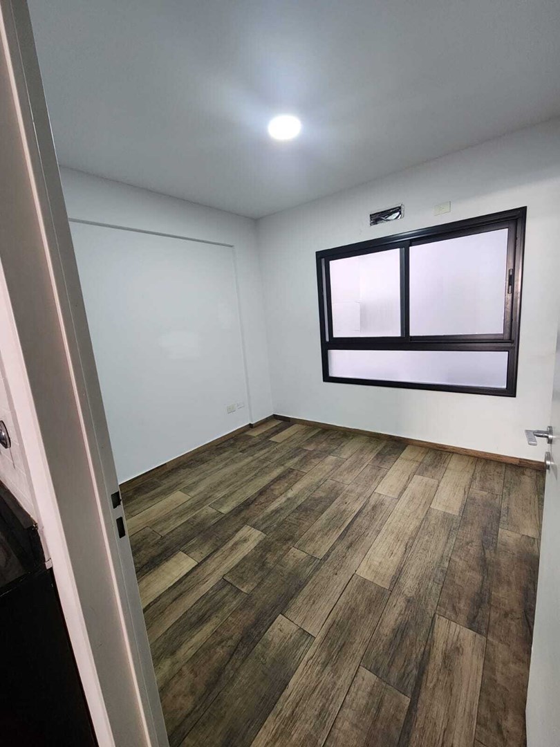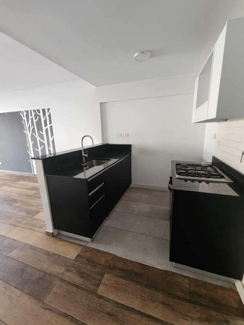 Ingreso principal al Living Comedor con salida al balcón. Cocina semi integrada con barra. Escritorio + Habitación con placard y baño en suite.