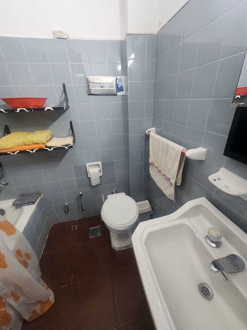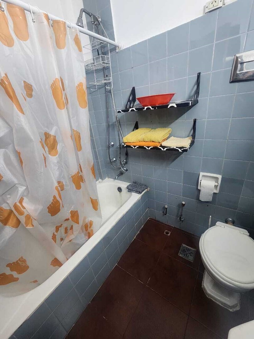 Baño completo con bañadera. El edificio cuenta con terraza.
